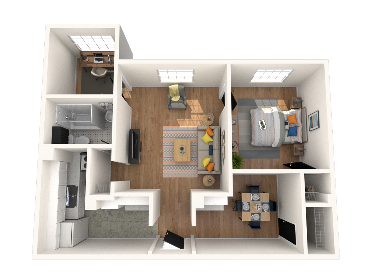 This apartment home features beautiful hardwood floors, new kitchen flooring and counters, high ceilings, large paned glass windows, ample closet and storage space, and home office/sun room. Building amenities highlight controlled building entry, reserved off street parking (subject to availability), smoke-free property, on-site laundry facility, community courtyard with BBQ and seating, and great proximity to Downtown, Cherry Creek, and Broadway. For more information please contact our leasing office at (303) 839-1112 or via email at Leasing@aldenbrownco.com. The Chateau Apartments is managed by Alden Brown and Co., LLC.