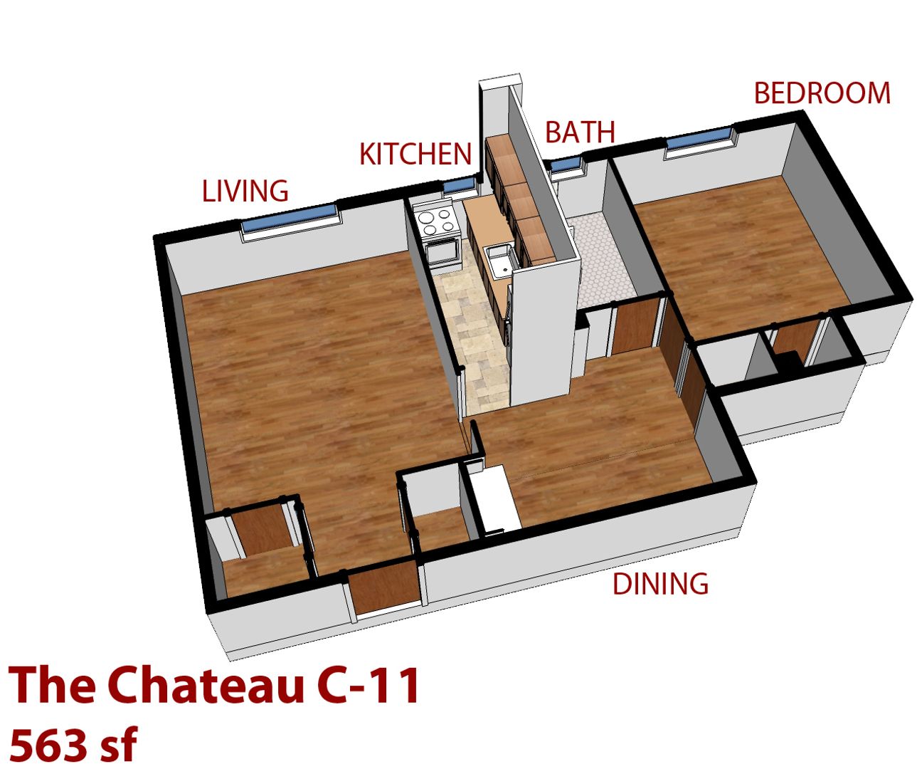 This apartment comes complete with hardwood flooring, unique floor plan with dining room, built-in China hutch, high ceilings, and large paned glass windows facing the building's courtyard. Building amenities highlight controlled building entry, on-site laundry facility, community courtyard complete with BBQ and seating, smoke-free property, reserved off-street parking (subject to availability), and great proximity to Downtown, Cherry Creek, and Broadway. For more information please contact our leasing office at (303) 839-1112 or via email at Leasing@aldenbrownco.com for any additional questions. The Chateau Apartments is managed by Alden Brown and Co., LLC.