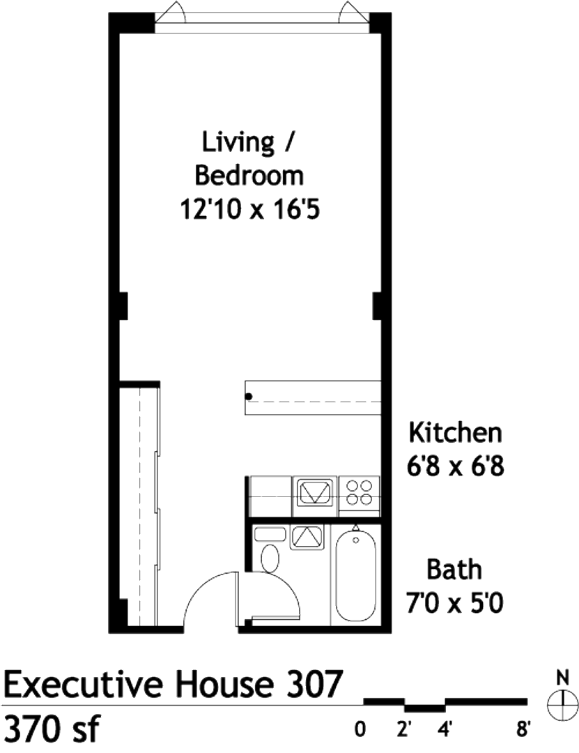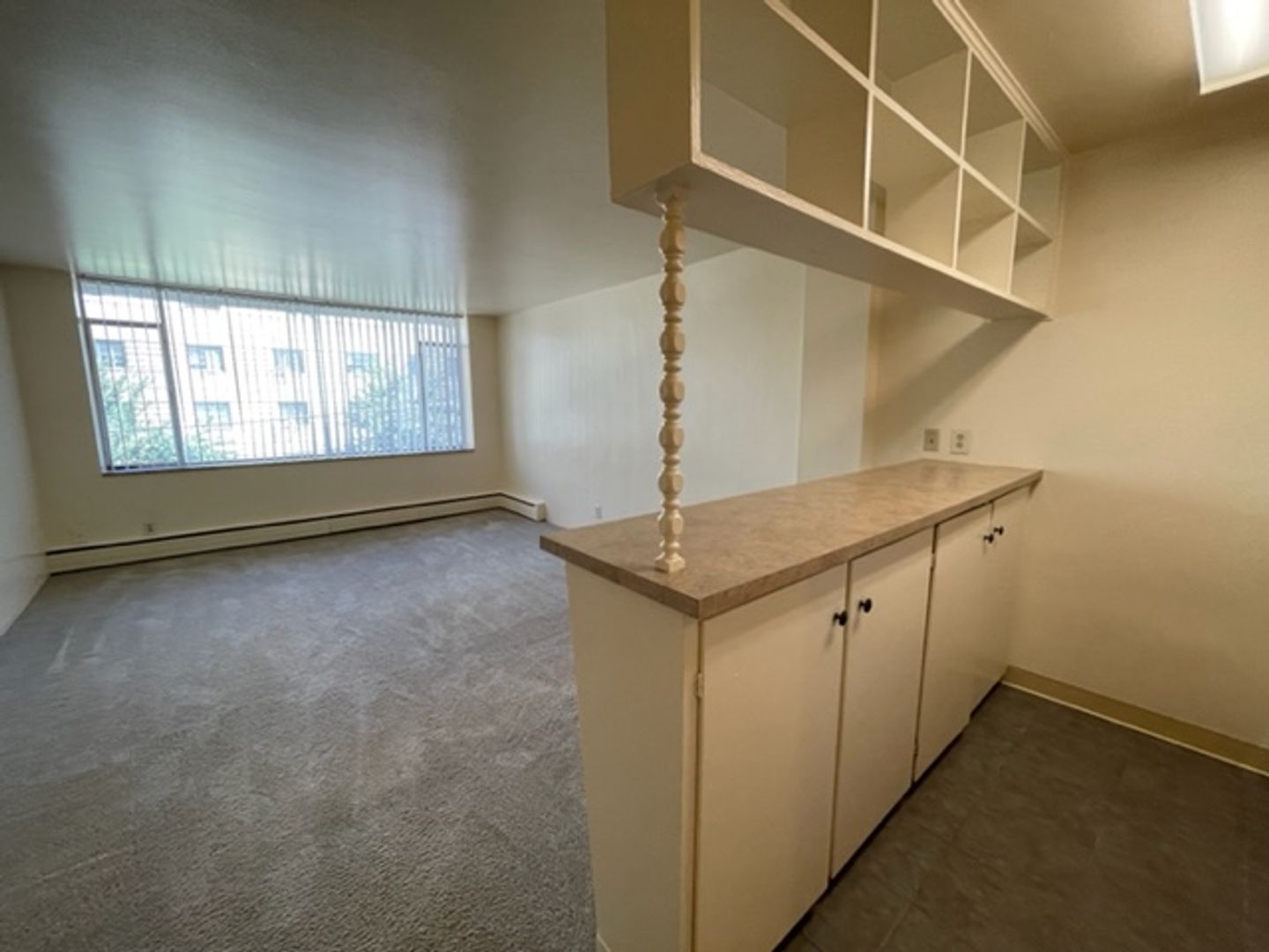 This apartment home features a fully updated kitchen complete with new cabinets and counters, new bathroom tile, vanity, and lighting, open living room/bedroom, and wall to wall picture frame windows with views of Downtown. Building amenities highlight controlled building entry, free heat, gas, water, and trash utilities, on-site laundry facility, and great proximity to Downtown, Cherry Creek, and Broadway. For more information, please contact our leasing office at (303) 839-1112 or via email at Leasing@AldenBrownCo.com. The Executive House Apartments is managed by Alden Brown and Co., LLC.