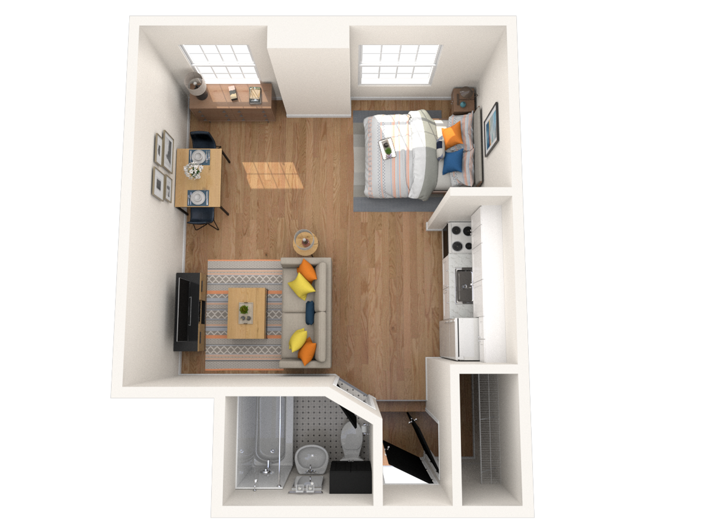 Top Floor Studio with Hardwood Floors in the Historic Chateau Apartments