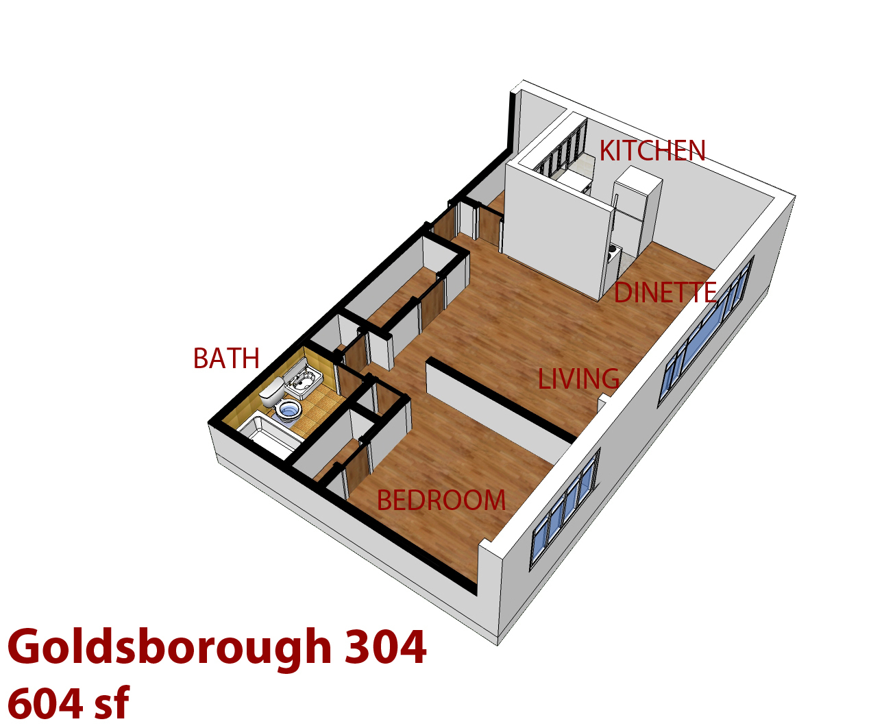 This top floor apartment features beautiful hardwood floors, high coved ceilings, efficient kitchen and dining nook, walk-in closets, and original Art-Deco bathroom tile. Building amenities highlight controlled building entry, reserved off street parking (subject to availability), on-site laundry facility, community courtyard complete with BBQ and seating area, and great proximity to Downtown, Cherry Creek, and Broadway. For more information please contact our leasing office at (303) 839-1112 or via email at Leasing@aldenbrownco.com. The Goldsborough Apartments is managed by Alden Brown and Co., LLC.