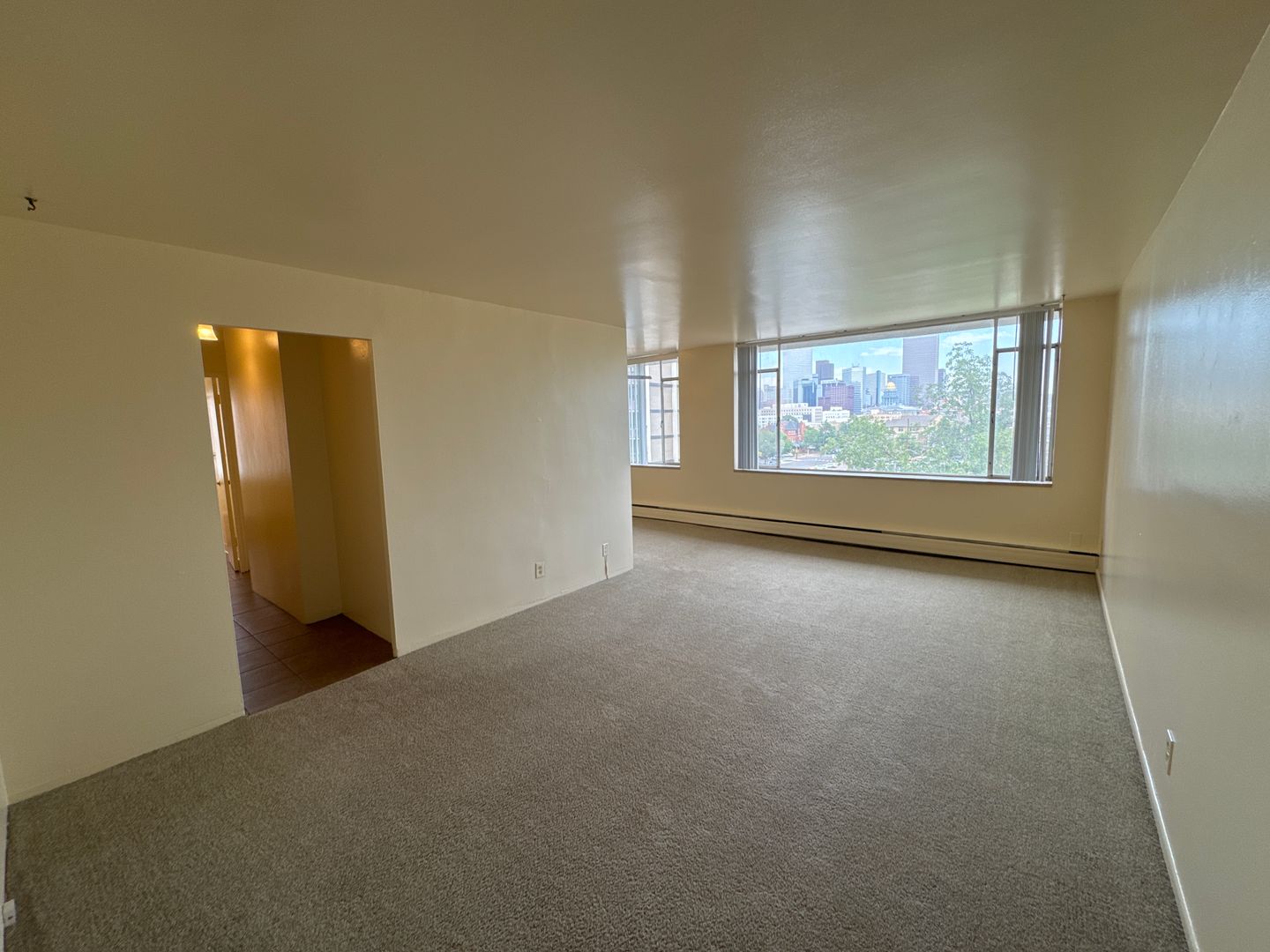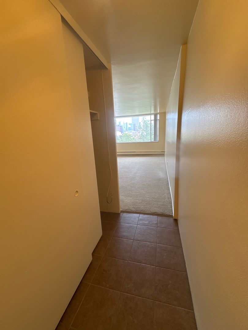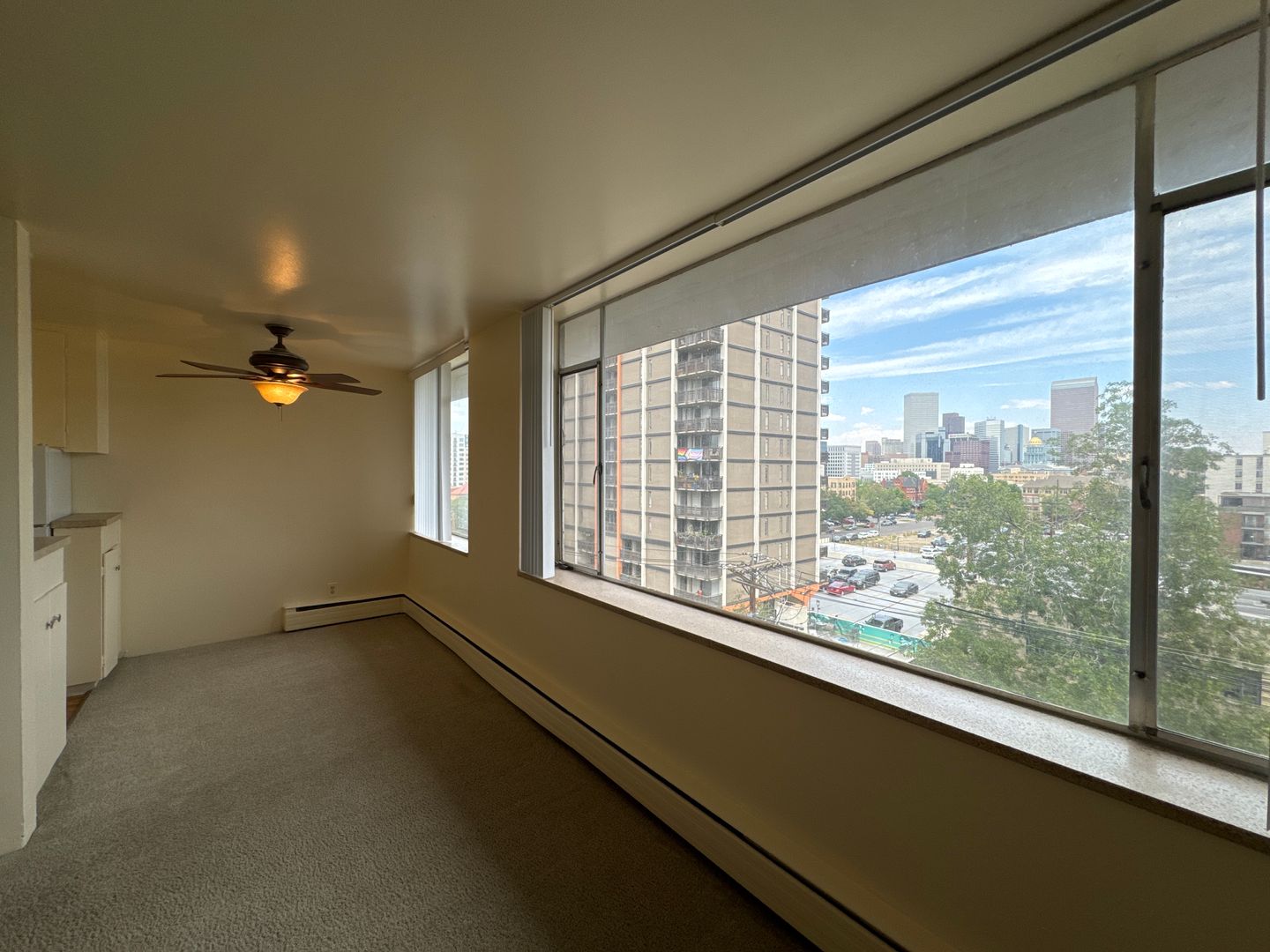 This two-bedroom apartment home located on the 7th floor, features a full-size kitchen with attached dining room, open living room with wall-to-wall picture frame windows, and a great view of Downtown Denver. Building amenities highlight controlled building entry, free heat, gas, water, and trash utilities, on-site laundry facility, and great proximity to Downtown, Cherry, and Broadway. For more information, please contact our on-site leasing office at (303) 839-1112 or via email at Leasing@AldenbrownCo.com. The Executive House Apartments is managed by Alden Brown and Co., LLC.