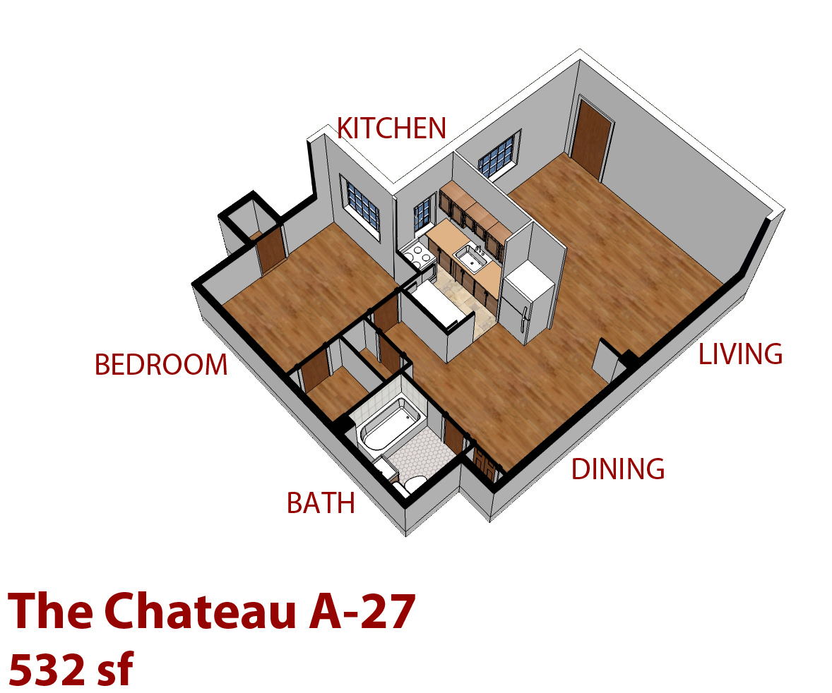 This one bedroom apartment home features subway bathroom tile, beautiful hardwood floors, high ceilings, original built-in hutches, and large paned glass windows. Building amenities highlight controlled building entry, reserved off street parking (subject to availability), community courtyard and patio, smoke free property, on-site laundry facility, and great proximity to Downtown, Cherry Creek, and Broadway. For more information please contact our leasing office at (303) 839-1112 or via email at Leasing@AldenBrownCo.com. The Chateau Apartments is managed by Alden Brown & Co., LLC.