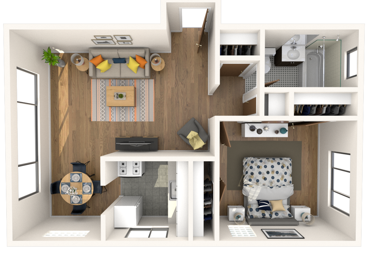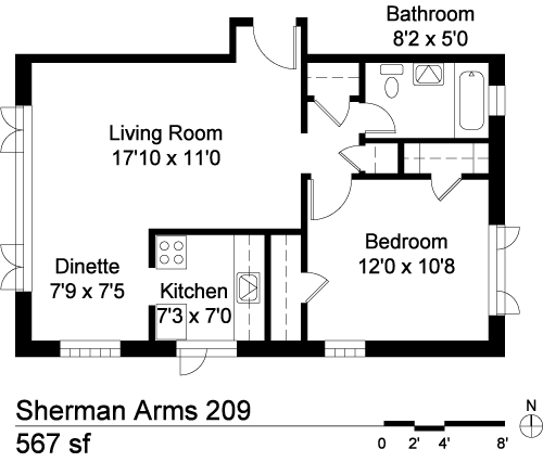 This apartment home features an open layout complete with high coved ceilings, walk-in closet, updated cabinets and countertops efficient kitchen & dining nook, Art-Deco bathroom tile, and wall to wall picture frame windows. Building amenities evaporative cooling system, controlled building access, on-site laundry facility, smoke-free property, roof-top patio, and great proximity to Downtown, Cherry Creek, and Broadway. For more information please contact our leasing office at (303) 832-1112 or via email at Leasing@aldenbrownco.com. The Sherman Arms is managed by Alden Brown and Co., LLC.