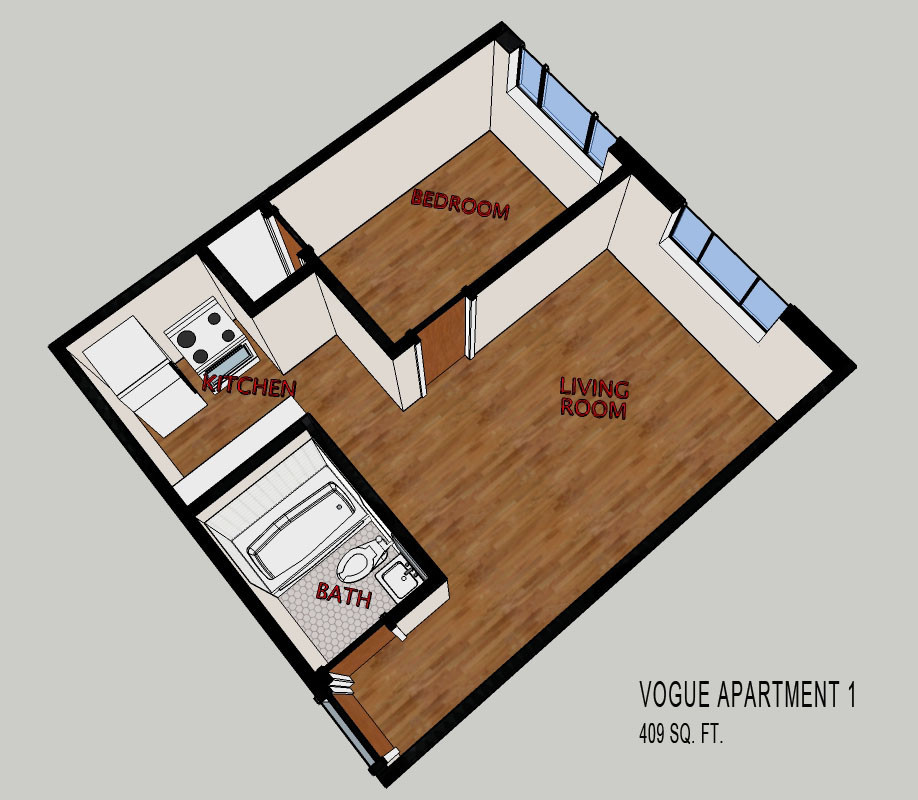 This garden level apartment home features an efficient layout complete with full size kitchen, updated bathroom, open living room, in unit a/c, and southern exposure for great natural lighting. Building amenities highlight water, trash, gas, and heat included in rent, controlled building access, on site laundry facility, community patio, and great proximity to Downtown, Cherry Creek, and Broadway. For more information, please contact our leasing office at (303) 893-1112 or via email at leasing@aldenbrownco.com. The Vogue Apartments is managed by Alden Brown and Co., LLC.