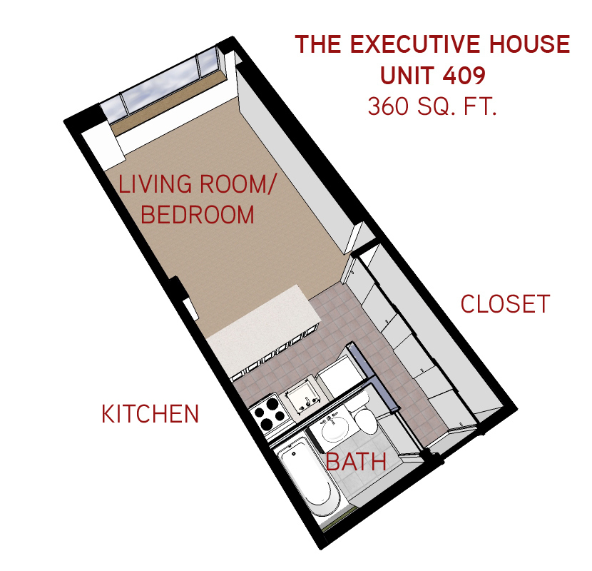 This studio apartment features a spacious kitchen with lots of storage, updated bathroom tile, vanity and lighting, open living room/bedroom, and wall to wall windows for great natural light and views of Downtown. Building amenities highlight controlled building entry, heat, gas, water, and trash included in rent, recycling, evaporative cooling system, on-site laundry facility, smoke free property, and great proximity to Downtown, Cherry Creek, and Broadway. For more information, please contact our on-site leasing office at (303) 839-1112 or via email at Leasing@aldenbrownco.com. The Executive House is managed by Alden Brown and Co., LLC.